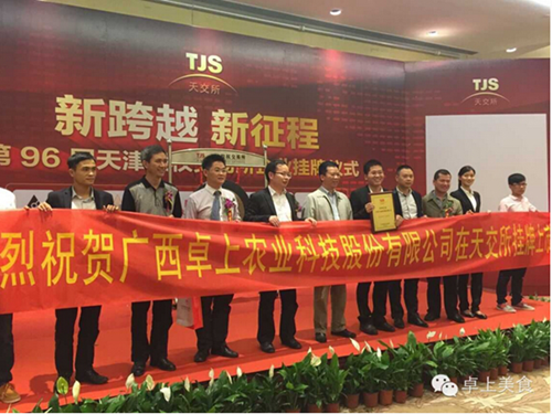 我院學(xué)生李上國(guó)(舉牌者)創(chuàng)辦的的卓上農(nóng)業(yè)科技有限公司在天津上市