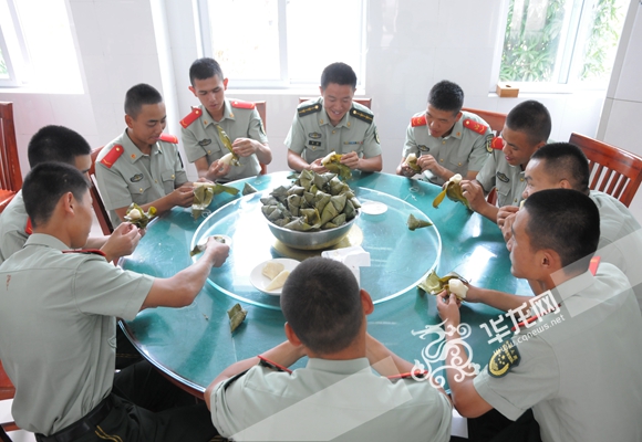武警正在官兵包粽子。 通訊員 郭傳武 攝