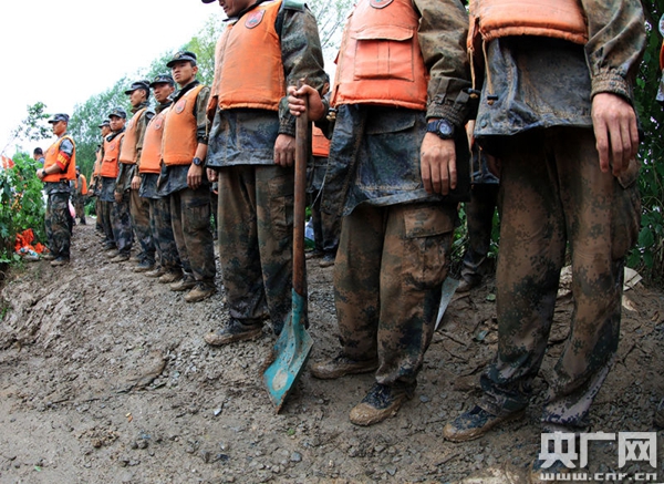 另外,南京周邊的安徽當(dāng)涂縣水位也已超過(guò)警戒線,部分河堤被洪水漫過(guò),村莊和農(nóng)田被淹,第一集團(tuán)軍某機(jī)步旅緊急出動(dòng)300余名官兵,攜帶鍬鎬,正趕往災(zāi)區(qū)展開(kāi)救援。(照片由趙家佳佳提供)