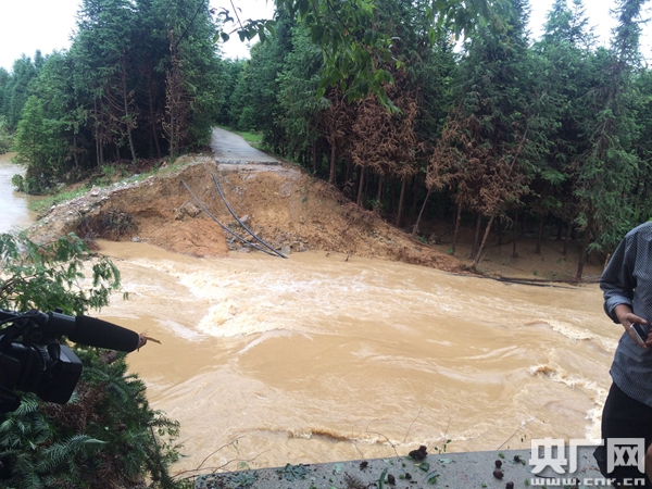 到達(dá)事發(fā)地后發(fā)現(xiàn),雙西湖村黃泥湖撇洪溝已出現(xiàn)長(zhǎng)50米寬10米高5米的缺口。東至縣水務(wù)局黃學(xué)良副局長(zhǎng)告訴記者:“決口下游就是黃泥湖和七里湖,如果情況繼續(xù)惡化,會(huì)直接危及下游的兩萬(wàn)人和七千畝農(nóng)田!