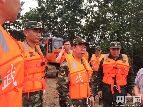 武警安徽總隊(duì)司令員王寶音查看決堤處