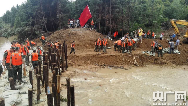安徽東至:洪水肆虐堤壩決口 黃山武警馳援封堵(組圖)