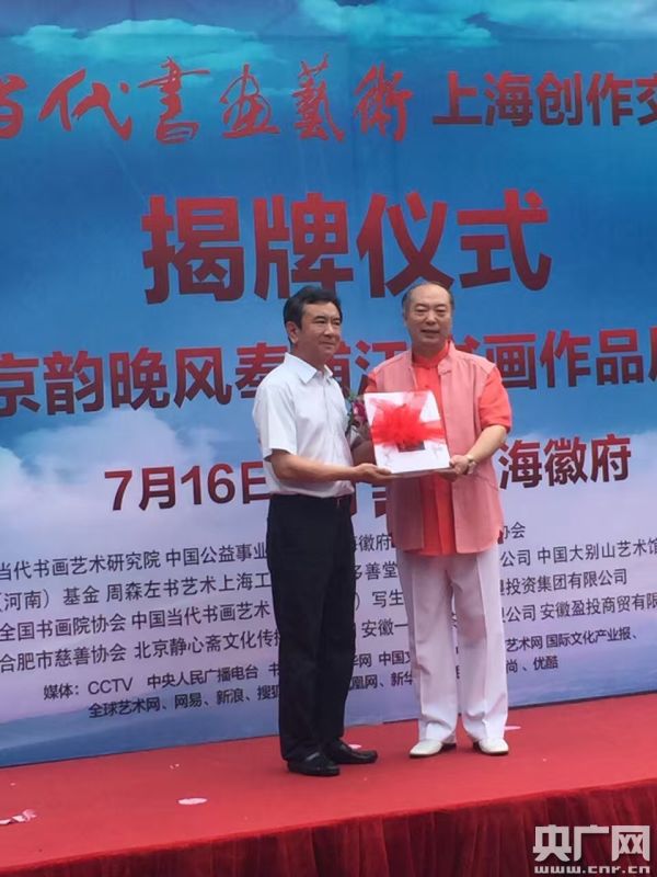 央廣網(wǎng)北京7月17日消息(記者于聞)京韻皖風(fēng)奉浦江,揮毫落紙墨痕新。2016年7月16日上午,中國(guó)當(dāng)代書畫藝術(shù)(上海)創(chuàng)作交流中心在上海市閔行區(qū)南華街82號(hào)上;崭≈亟遗,同時(shí)《京韻皖風(fēng)奉浦江書畫作品展》也隆重開幕。