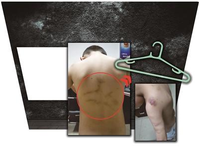 晾衣架形狀的傷痕,孩子身上被晾衣架打出的傷痕。