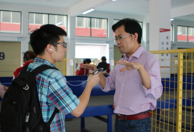 ▲張廣富(圖左)來(lái)到服務(wù)站訂個(gè)測(cè)量?jī)x。