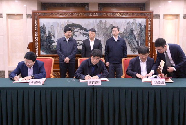 今天,重慶、四川、云南、貴州四省市簽署的《協(xié)議》明確,建立上游地區(qū)省際協(xié)商合作聯(lián)席會機(jī)制,加強(qiáng)長江上游地區(qū)統(tǒng)籌協(xié)調(diào),協(xié)同破解發(fā)展難題,推進(jìn)生態(tài)聯(lián)防聯(lián)控、基礎(chǔ)設(shè)施互聯(lián)互通、產(chǎn)業(yè)創(chuàng)新協(xié)同發(fā)展、市場一體化發(fā)展、公共服務(wù)共建共享,推動上游地區(qū)一體化發(fā)展,合力打造重要經(jīng)濟(jì)增長極。湖北、江西、湖南三省簽署的《協(xié)議》明確,構(gòu)建決策、協(xié)調(diào)、執(zhí)行三級架構(gòu),實(shí)行會商決策、協(xié)調(diào)推動、執(zhí)行落實(shí)三級運(yùn)作,協(xié)同優(yōu)化區(qū)域經(jīng)濟(jì)社會發(fā)展格局,推動生態(tài)環(huán)境聯(lián)防聯(lián)控,加強(qiáng)基礎(chǔ)設(shè)施互聯(lián)互通,深化市場一體化體系建設(shè),推動產(chǎn)業(yè)和科技創(chuàng)新協(xié)調(diào)發(fā)展,強(qiáng)化公共服務(wù)共建共享。