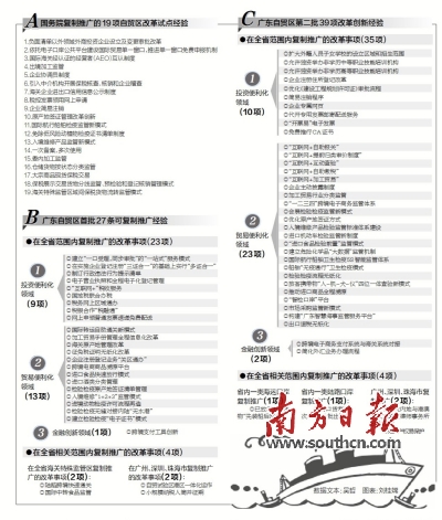 前不久,國務(wù)院印發(fā)了《關(guān)于做好自由貿(mào)易試驗(yàn)區(qū)新一批改革試點(diǎn)經(jīng)驗(yàn)復(fù)制推廣工作的通知》,決定在全國范圍復(fù)制推廣上海、天津、廣東、福建等4個(gè)自貿(mào)試驗(yàn)區(qū)的19項(xiàng)改革試點(diǎn)經(jīng)驗(yàn)。而此前,廣東省政府已分兩批在全省及相關(guān)范圍內(nèi)復(fù)制推廣了66項(xiàng)廣東自貿(mào)區(qū)的改革創(chuàng)新經(jīng)驗(yàn)。