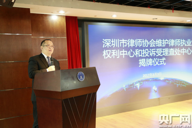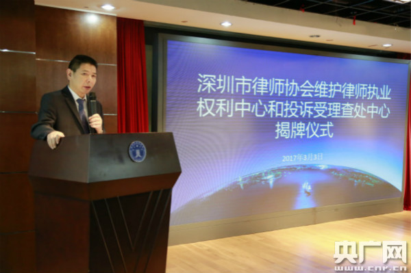 央廣網(wǎng)深圳3月3日消息(記者黃倩、于鑫淼)今天上午,深圳律協(xié)掛牌成立“維護(hù)律師執(zhí)業(yè)權(quán)利中心”和“投訴受理查處中心”。深圳市司法局局長(zhǎng)蔣溪林、深圳市律師協(xié)會(huì)會(huì)長(zhǎng)高樹(shù)等為維權(quán)中心和投訴中心揭牌。