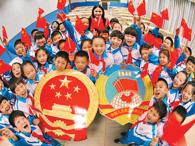 河北秦皇島先盛里小學開展“兩會知識知多少”主題班會。曹建雄攝(人民視覺)