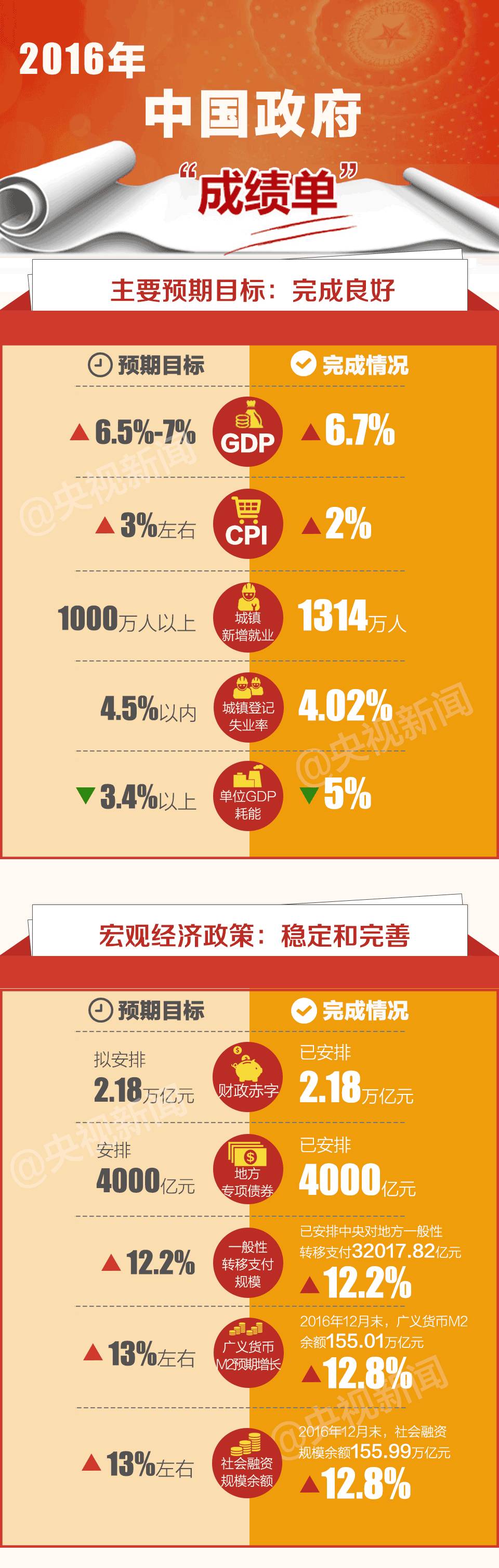 2017年中國“兩會”時間已經開啟。3月1日,國務院公布了2016年《政府工作報告》量化指標任務的落實情況,三十多項硬指標中,有的達標完成,有的超額完成。接下來,小編就帶你來逐一“對賬”,看看這份有關我國經濟社會發(fā)展的答卷,你給打幾分?
