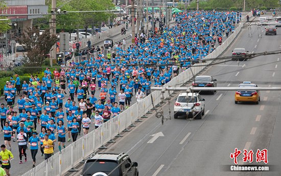 中新網(wǎng)北京4月16日電(岳川) 2017北京國際長跑節(jié)暨北京半程馬拉松(“北京跑”)于16日早晨鳴槍起跑,約兩萬名跑者參賽其中。