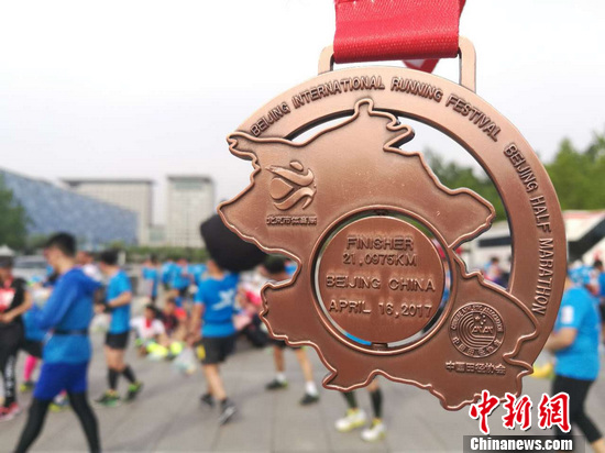 所有完賽選手,都將獲得一枚獎牌。 中新網(wǎng)記者 岳川 攝