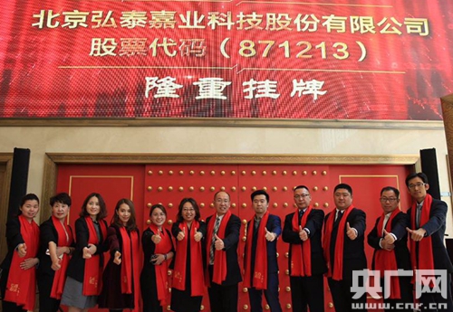 央廣網(wǎng)北京4月27日消息(記者 于聞)4月27日,北京弘泰嘉業(yè)科技股份有限公司在北京市金融大街全國(guó)中小企業(yè)股份轉(zhuǎn)讓系統(tǒng)中心隆重舉行新三板掛牌敲鐘儀式。該公司董事長(zhǎng)畢燃等負(fù)責(zé)人、投資方負(fù)責(zé)人以及媒體代表等出席掛牌儀式,共同見證了“遠(yuǎn)程病理服務(wù)第一股”啟航。