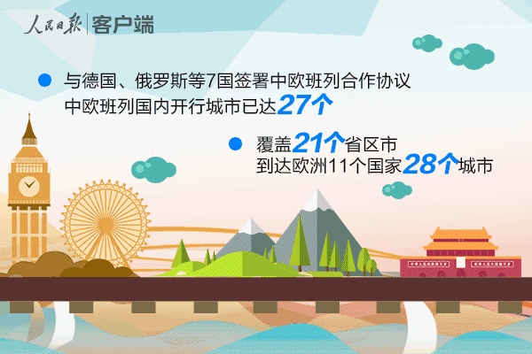 目前,中歐班列國內(nèi)開行城市已達(dá)27個,覆蓋21個省區(qū)市,到達(dá)歐洲11個國家的28個城市。