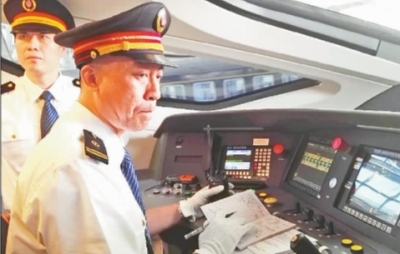 “復興號”駕駛員正在做出車前的準備工作。光明日報記者 郭俊鋒攝/光明圖片