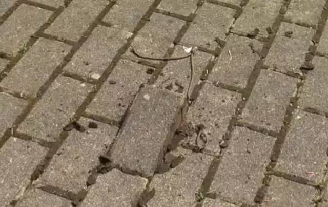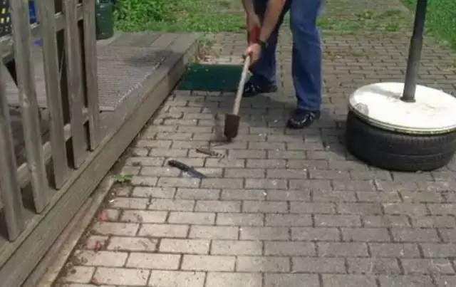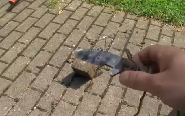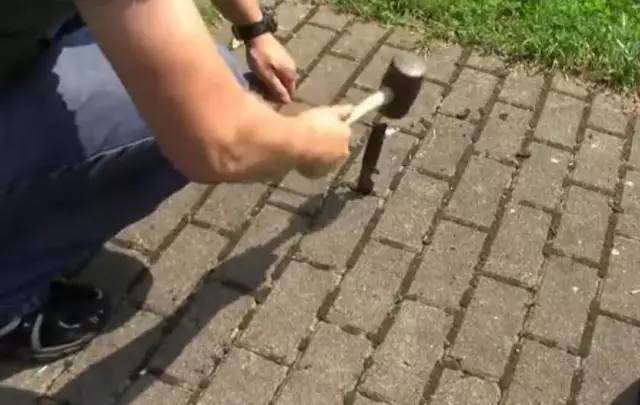 鑿進(jìn)地磚內(nèi),從側(cè)面擊打