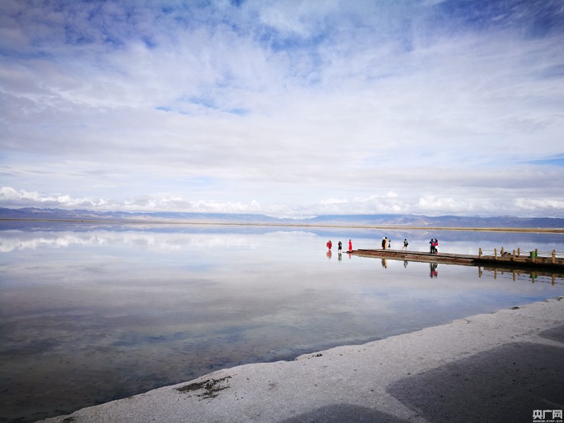 央廣網(wǎng)西寧9月4日消息(記者 林霞)9月3日,全國臺(tái)聯(lián)“一帶一路”兩岸記者參訪團(tuán)走進(jìn)青海,來到“天空之境”——茶卡鹽湖。茶卡鹽湖位于青海省海西蒙古族藏族自治州烏蘭縣茶卡鎮(zhèn)。被國家旅游地理雜志評(píng)為“人一生必去的55個(gè)地方”之一。 “茶卡”是藏語,意即鹽池,也就是青鹽的海。在這里,遠(yuǎn)處水與天已沒有明顯的界限,湖盡頭與天相連,天是湖的一部分,湖是天的補(bǔ)充。