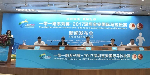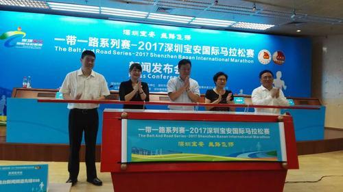 國家體育總局田徑管理中心馬拉松辦公室主任水濤、寶安區(qū)人民政府副區(qū)長梁敏華、寶安區(qū)委宣傳部常務(wù)副部長王曦、寶安區(qū)文體旅游局副局長盧清、智美體育集團高級副總裁、深圳賽格智美總經(jīng)理沈偉以及特邀跑團代表、寶馬組委會各職能單位代表共同出席了20日的新聞發(fā)布會。2017深圳寶安國際馬拉松賽是由中國田徑協(xié)會、深圳市寶安區(qū)委區(qū)政府共同主辦,深圳市寶安區(qū)文體旅游局、深圳賽格智美體育文化發(fā)展有限公司聯(lián)合承辦。