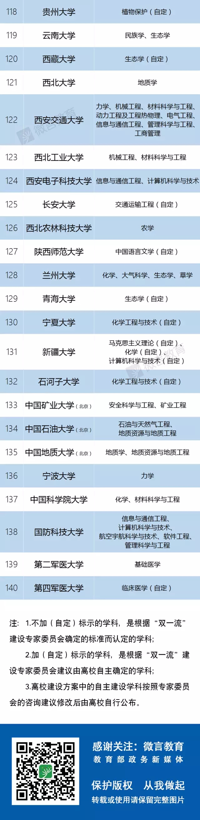 據(jù)教育部官方微信“微言教育”消息,教育部、財(cái)政部、國家發(fā)展改革委日前印發(fā)《關(guān)于公布世界一流大學(xué)和一流學(xué)科建設(shè)高校及建設(shè)學(xué)科名單的通知》,公布世界一流大學(xué)和一流學(xué)科(簡稱“雙一流”)建設(shè)高校及建設(shè)學(xué)科名單。