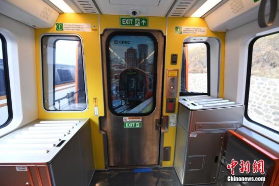 10月16日,由中車長(zhǎng)春軌道客車股份有限公司研制的首批美國(guó)波士頓橙線地鐵車在長(zhǎng)春順利下線,預(yù)計(jì)在今年12月份運(yùn)抵美國(guó)。中新社記者 張瑤 攝