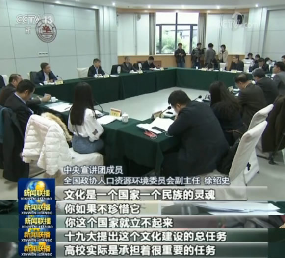 央視網(wǎng)消息(新聞聯(lián)播):連日來,學習貫徹黨的十九大精神中央宣講團走進高校,通過透徹深入的宣講、貼近實際的解讀,讓黨的十九大精神落地生根。