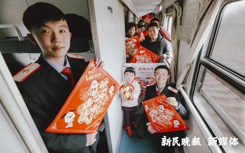 當(dāng)“福”字伴隨著列車員的腳步傳遞,歡聲笑語在一節(jié)節(jié)車廂內(nèi)傳遞,旅客人手一張大大的“福”字,過節(jié)的氣氛愈發(fā)濃烈。隨著列車行進,不斷有旅客半途上車,車廂里的人越來越多。