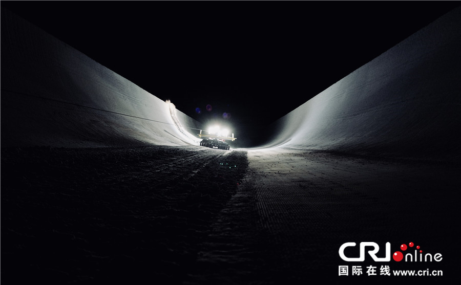 深夜,張家口密苑云頂樂園滑雪場的U型槽場地內(nèi),來自美國的職業(yè)鏟冰師泰森正在操縱巨大的機(jī)械臂修整池壁。泰森介紹“中國國家隊隊員就在這塊場地訓(xùn)練,我的工作是盡量把U型槽的角度控制在82度左右,和奧運(yùn)會場地相近。如果角度過小或者過大,都會影響到選手的表現(xiàn)!