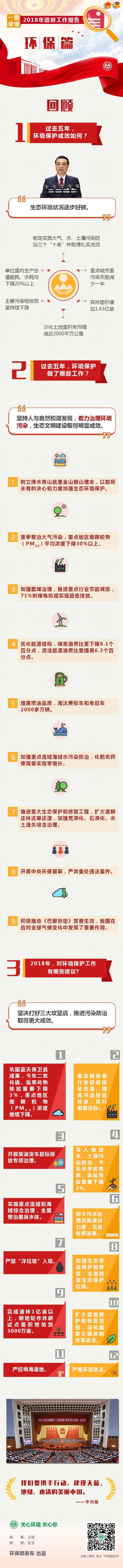 今日上午9時,十三屆全國人大一次會議在人民大會堂開幕,國務(wù)院總理李克強作政府工作報告。一圖讀懂,2018年政府工作報告之“環(huán)保篇”。