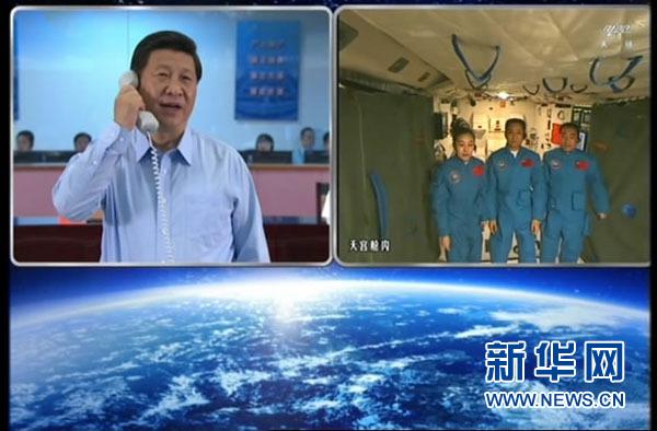 2013年6月,習(xí)近平在北京航天飛行測(cè)控中心與正在天宮一號(hào)執(zhí)行任務(wù)的三位航天員進(jìn)行天地通話時(shí)表示,飛天夢(mèng)是強(qiáng)國夢(mèng)的重要組成部分,隨著中國航天事業(yè)的快速發(fā)展,中國人探索太空的腳步會(huì)邁得更大、更遠(yuǎn)。