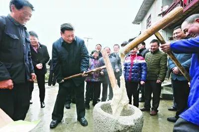 2016年2月1日至3日,習近平總書記來到江西看望慰問廣大干部群眾和駐贛部隊。在井岡山,習近平乘車沿著山路輾轉(zhuǎn)來到黃洋界腳下的茅坪鄉(xiāng)神山村,紅軍烈士后代左秀發(fā)一家正在準備年貨?倳泚淼剿议T前,拿起木槌,同村民一起打糍粑?吹阶蠹壹庸ぶ裰乒に嚻,養(yǎng)娃娃魚,聽說年后要改造房子,總書記十分高興,希望一家人早日住上新房,生活越來越好。他叮囑老人的孫子好好學習。