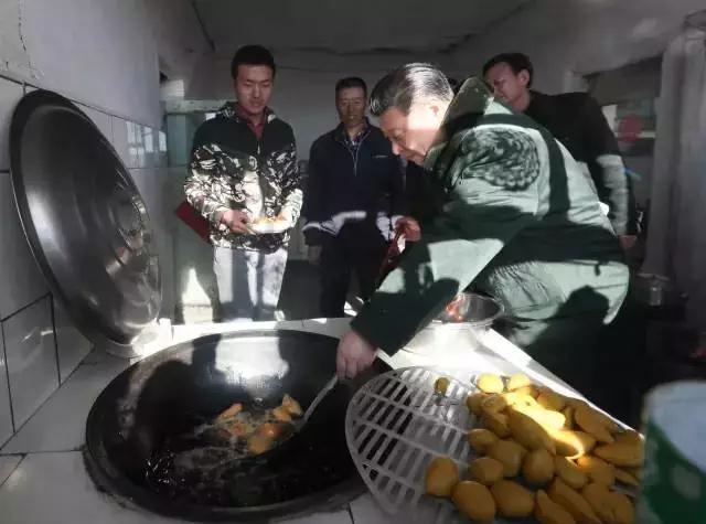 在徐學海家,得知徐學海之前因心臟病手術(shù)負債4萬多元,并且不能再干重活,習近平安慰他好好養(yǎng)病,鼓勵他樂觀堅強,囑咐當?shù)馗刹可钊胙芯恳虿≈仑殕栴},采取及時有效的幫扶措施。徐學海請總書記同他們一起炸年糕,習近平高興地同他家人一起操作起來。