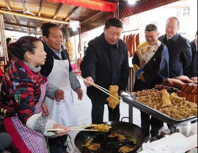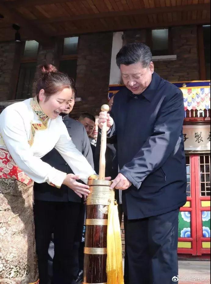 2018年2月12日,習近平總書記前往四川汶川縣映秀鎮(zhèn)考察。實地察看這里震后10年的發(fā)展振興情況。在當?shù)厝罕娊?jīng)營的制茶坊,總書記了解發(fā)展茶產(chǎn)業(yè)帶動群眾致富的情況,還親自操作打酥油茶。在村民開辦的飯店,總書記問生意怎么樣,一家人的生活過得好不好。他還體驗了炸酥肉和磨豆花的過程。總書記轉(zhuǎn)動磨盤,笑著說:“很練臂力啊,真是越磨越帶勁!爆F(xiàn)場響起陣陣歡聲笑語。