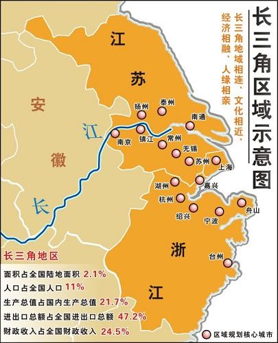 圖表:長三角區(qū)域示意圖 來源:新華社