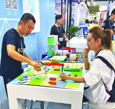工作人員向觀眾展示編程機(jī)器人。光明日報記者 黨文婷攝/光明圖片