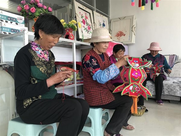 在青海省海西蒙古族藏族自治州烏蘭縣銅普鎮(zhèn)都蘭河村,村民在制作手工藝品(5月15日攝)。