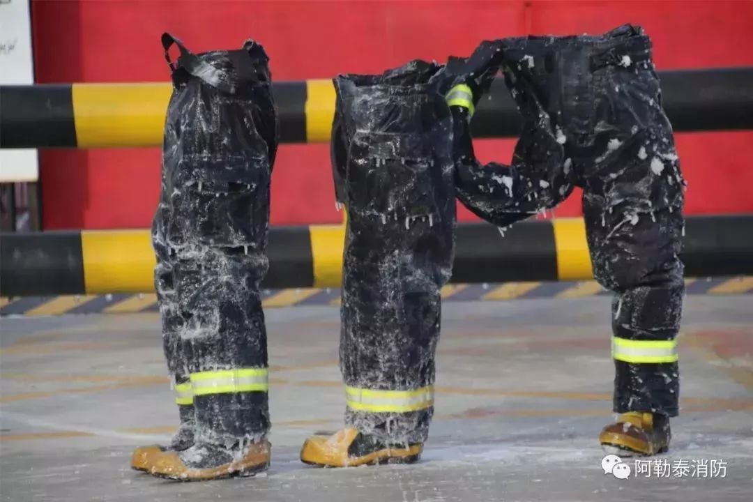 1月26日,新疆阿勒泰哈巴河縣薩爾塔木鄉(xiāng)烏愣開發(fā)區(qū)阿克塔木村一小車起火,哈巴河消防大隊迅速出動2車12人到場進行處置。消防官兵歸隊后,脫下戰(zhàn)斗服,發(fā)現(xiàn)戰(zhàn)斗服已凍僵立在地上,于是消防官兵就創(chuàng)意性的擺出了“119”字樣。