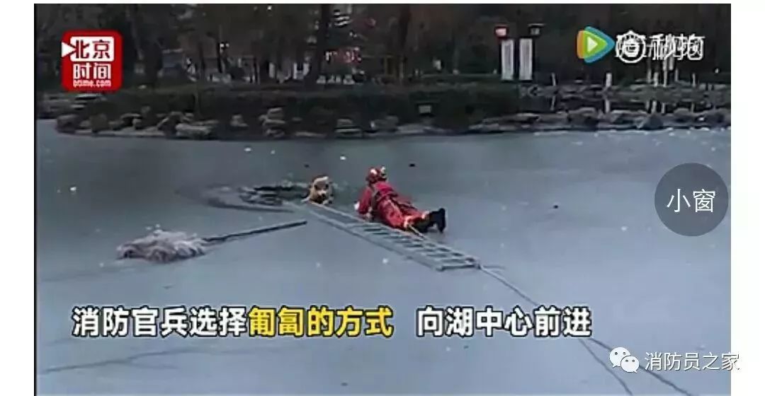 2月7日,陜西西安一只寵物狗被困湖中心的冰窟窿里。消防員身系繩索在冰面上匍匐前進,盡管冰面發(fā)生破裂,消防員還是將狗救回岸邊。