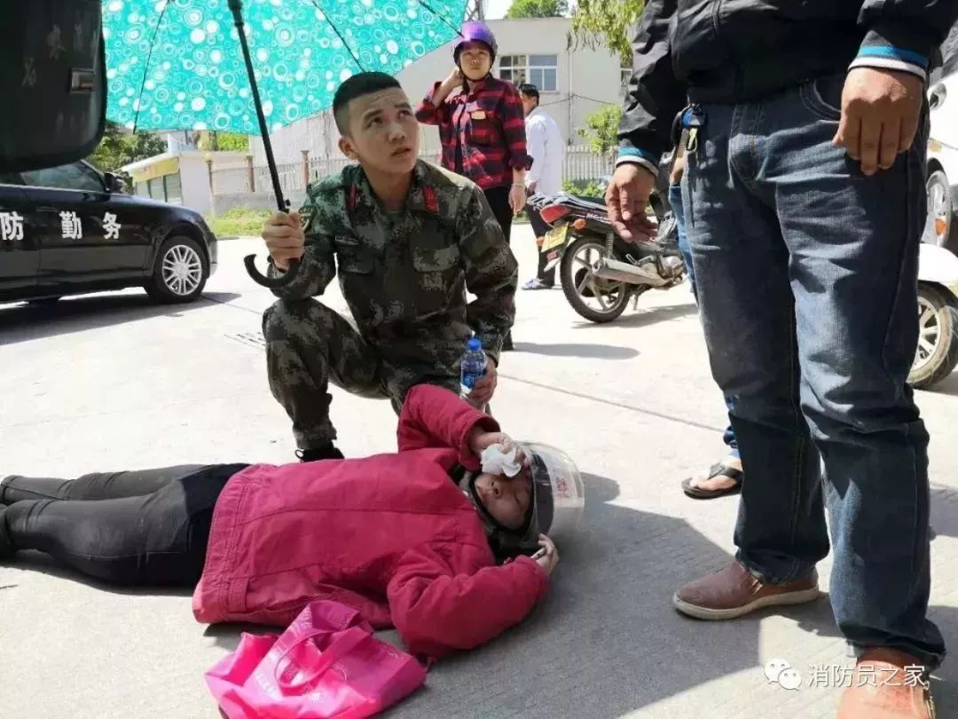 4月8日,福建省漳州市長泰縣順祥路口一面包車與一電動車發(fā)生碰撞,導致騎電動車的女子摔倒在地。這一幕,恰好被公差勤務途中的長泰消防大隊消防員陳凱和賈專益看到,二人立即上前了解情況。迅速將電動車從該女子身上挪開,推到旁邊空地。