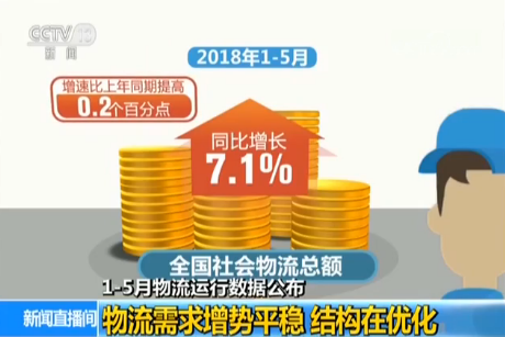 央視網(wǎng)消息:中國物流與采購聯(lián)合會(huì)今天(28日)公布了今年前五個(gè)月社會(huì)物流運(yùn)行數(shù)據(jù)。1-5月物流需求保持平穩(wěn)增長,結(jié)構(gòu)進(jìn)一步優(yōu)化,物流行業(yè)發(fā)展勢頭良好。