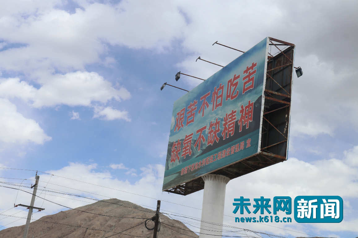2018年7月,喀什市到塔縣沿途中的一處標(biāo)語“艱苦不怕吃苦,缺氧不缺精神”。未來網(wǎng)記者 鞏帥 攝