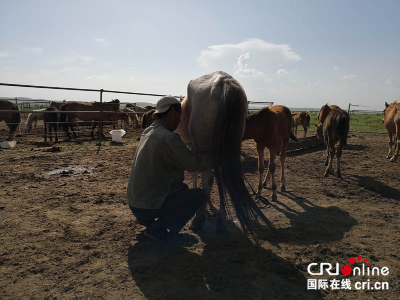 呼格吉勒?qǐng)D家目前總共有280匹馬,每天可以產(chǎn)500公斤的鮮馬奶。除了按合同提供給其他企業(yè)去加工生產(chǎn)酸馬奶和馬奶奶粉外,余下的部分他想留給自己的廠子做原料!斑@樣的話更有賺頭!彼f(shuō)。