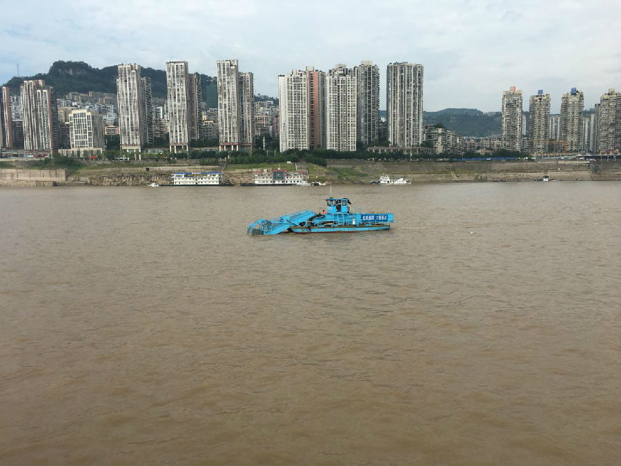 萬州區(qū),位于長江上游地區(qū)重慶東北部,處三峽庫區(qū)腹心,區(qū)位獨特,歷為渝東北、川東、鄂西、陜南、黔東、湘西的重要物資集散地,是成渝城市群沿江城市帶區(qū)域中心城市。從江面上看去,來回穿梭的貨輪、客輪中間,夾雜了幾艘藍(lán)色的船,不時地清理著江面上載浮載沉的各種垃圾。