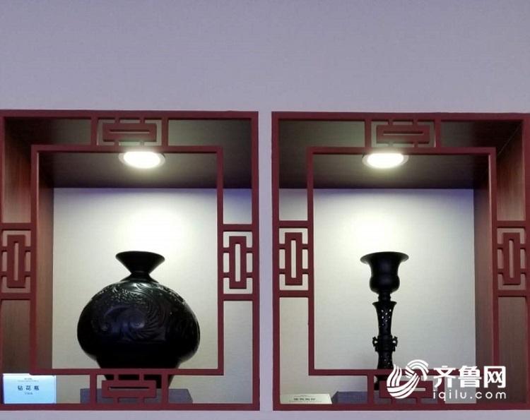 鉆花瓶、蛋殼套杯,德州黑陶渾厚莊重。