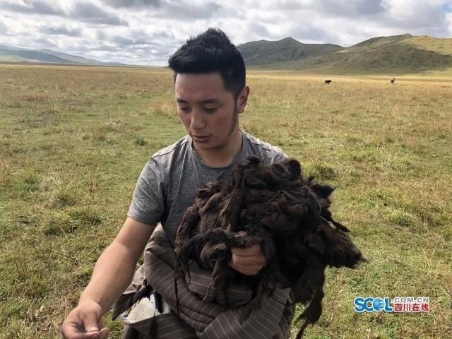 記者:你剛剛和牦牛來(lái)了個(gè)抱摔,看來(lái)采牛絨也是挺危險(xiǎn)的。在這個(gè)過(guò)程中,你害怕過(guò)嗎?