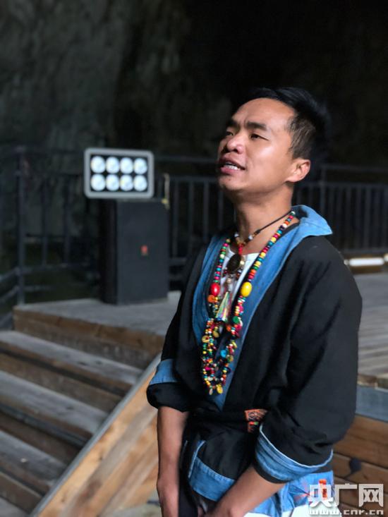 白褲瑤族小伙唱山歌。(央廣網(wǎng)記者 張瑜瑜 攝)