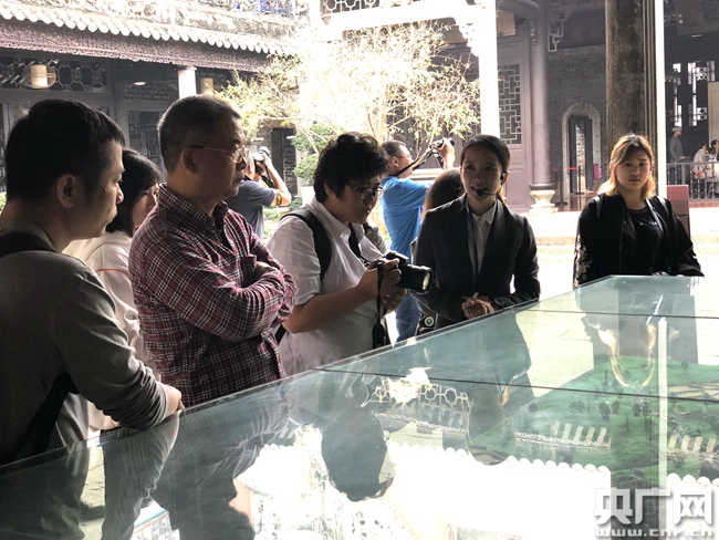 媒體采風(fēng)團(tuán)參觀粵東會(huì)館。(央廣網(wǎng)記者 張瑜瑜 攝)