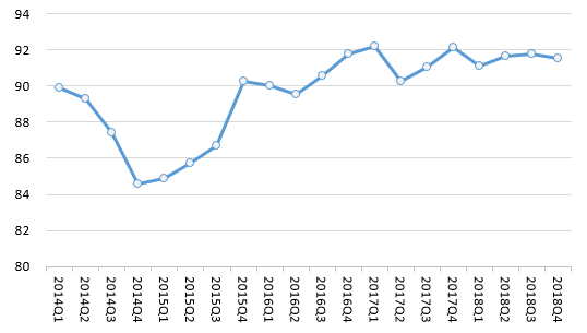 八是全國(guó)消費(fèi)維權(quán)指數(shù)保持高位。2018年,全國(guó)消費(fèi)維權(quán)指數(shù)平均為91.53,較去年同期增長(zhǎng)了0.11個(gè)點(diǎn),與五年平均值相比,增長(zhǎng)了1.9個(gè)點(diǎn)。全國(guó)消費(fèi)維權(quán)指數(shù)小幅增長(zhǎng),保持在高位,表明在我國(guó)經(jīng)濟(jì)總體平穩(wěn)、穩(wěn)中有進(jìn)的發(fā)展態(tài)勢(shì)下,消費(fèi)環(huán)境持續(xù)向好。