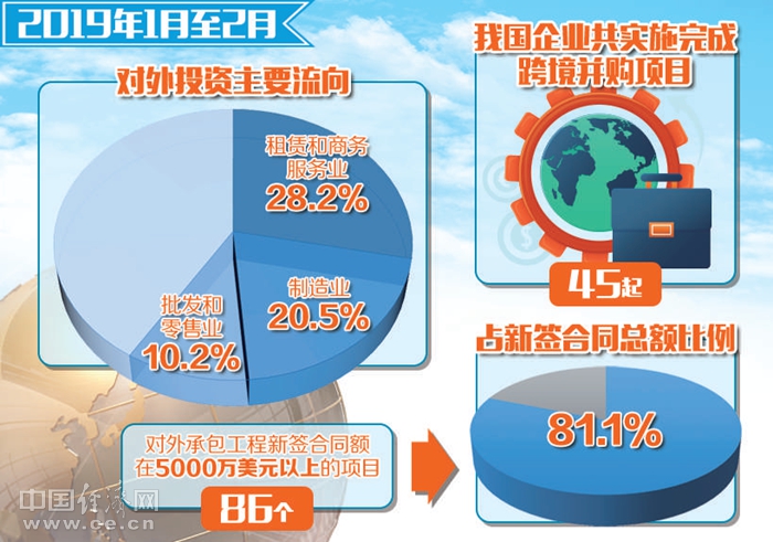 與此同時,跨境并購穩(wěn)步發(fā)展。前兩個月,我國企業(yè)共實施完成跨境并購項目45起,分布在英國、馬來西亞等22個國家和地區(qū),涉及制造業(yè)、金融業(yè)、租賃和商務(wù)服務(wù)業(yè)等12個行業(yè)大類,實際交易總額24.8億美元,其中直接投資18.5億美元。對外承包工程大項目多,帶動當(dāng)?shù)匕l(fā)展作用明顯。前兩個月,對外承包工程新簽合同額在5000萬美元以上的項目86個,占新簽合同總額的81.1%。對外承包工程完成營業(yè)額主要集中在交通運輸建設(shè)和電力工程建設(shè)行業(yè),合計占比超過60%,有效改善了東道國基礎(chǔ)設(shè)施條件。(經(jīng)濟日報-中國經(jīng)濟網(wǎng)記者 馮其予)