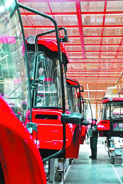 “一帶一路”倡議提出以來(lái),中國(guó)一拖集團(tuán)有限公司在深耕國(guó)內(nèi)市場(chǎng)的同時(shí),努力拓展海外市場(chǎng),產(chǎn)品遠(yuǎn)銷全球100多個(gè)國(guó)家和地區(qū)。圖為工人在工廠內(nèi)檢查拖拉機(jī)外殼。新華社發(fā)