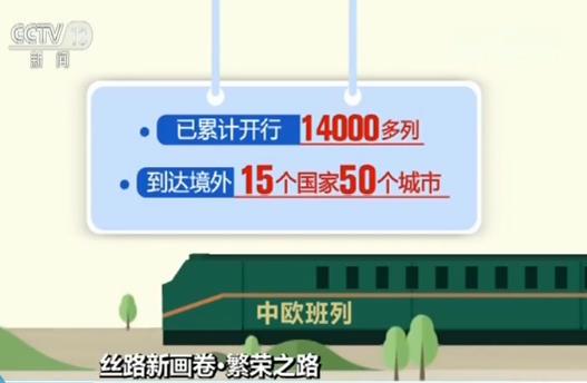 截止今年2月底,中歐班列已累計開行14000多列,通達境外15個國家50個城市。截止今年初,我國與共建“一帶一路”國家貨物貿(mào)易總額超過6萬億美元。